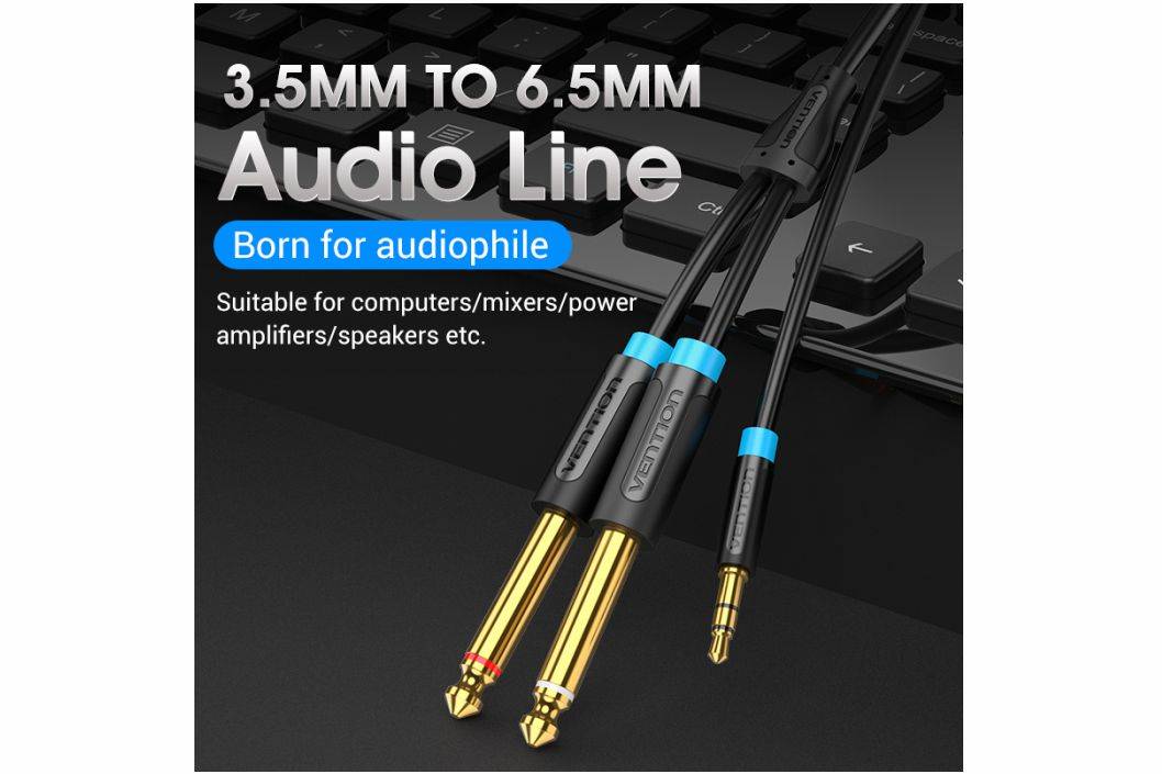 SPECIFICATIONS:🔹 Brand : Vention🔹 Product : 3.5mm Male to 2*6.5mm Male Cable🔹 Color : Black🔹 Connector Type : 3.5mm Male, 6.5mm Male🔹 Connector : Gold-plated🔹 Conductor : Tinned Copper🔹 Shell : PVC🔹 Jacket : PVC🔹 Length : 0.5m - 5m