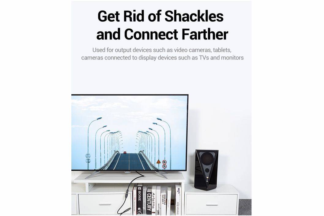 Specifications:🔹 Lenght : 1 Meter🔹 Connector Type : Mini HDMI Male to Standard HDMI Female🔹 Connector : 24k Gold Plated🔹 Conductor : 30AWG, 99.99% Oxygen-Free Copper, Standard 19pin🔹 Shielding : Aluminum Foil + Anti-Jamming Materials🔹 Jacket shell : PVC Environmental Material
