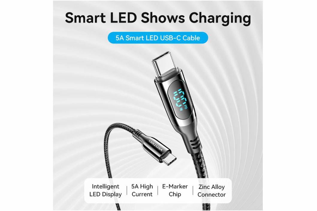 Vention Kabel Charger LED USB Type C Fast Charging Android Apple TAY