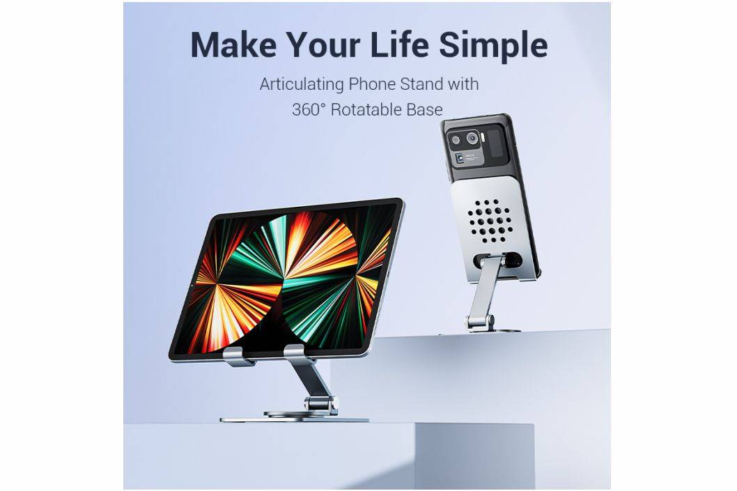 Specifications KSD :🔹 Color : Grey🔹 Material : Aluminum Alloy🔹 Size : 110mm x 70mm x 40mm🔹 Feature :- 360° Rotation Base- Adjustable View Angles