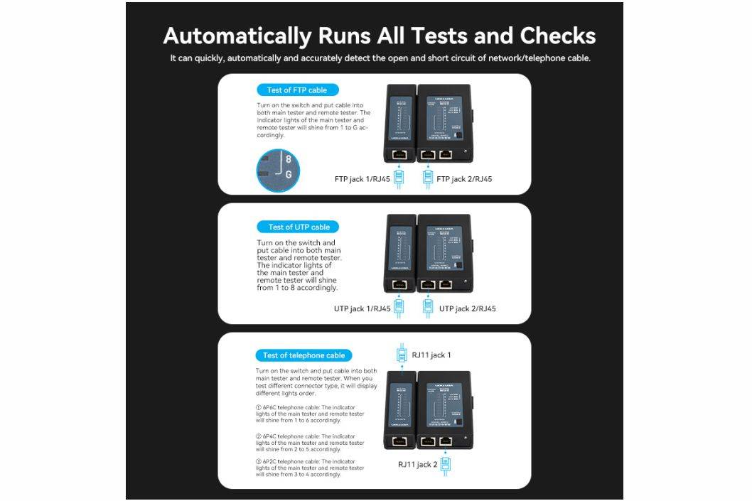⭐️ Vention LAN Cable Tester Alat Penguji Kabel RJ45+RJ11 Network Ethernet ⭐️