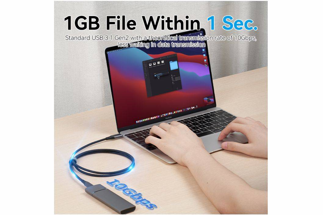 Specifications : 🔹 Length : - TAH : 0.5M / 1M 🔹 Connector Interface : - TAH : USB 3.1 Gen 2-C Male to Male 🔹 Connector Material : Nickel-plated 🔹 Conductor : Tinned Copper 🔹 Chipset : E-Marker 🔹 Shielding : Aluminum Foil+Metal Braied+GND 🔹 AWG : - TAH : 24AWG+32AWG 🔹 Jacket : - TAH : TPE+Nylon Braided