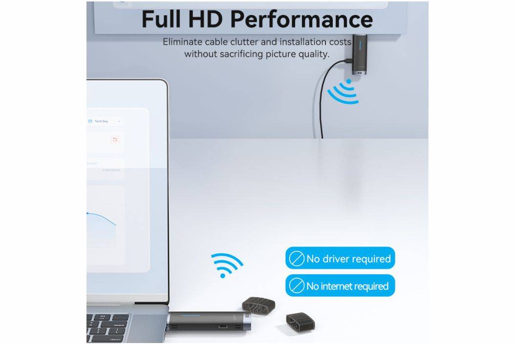 Features : 🔹 Full HD Performance 🔹 Long Distance Connection up to 40M with near-zero latency 🔹 Multipoint Connection up to 8 Source Device at same time 🔹 One-Touch Disconnect & Reconnect 🔹 5GHz Band Wi-Fi for smooth and sync audio and video 🔹 USB-C Port for Powered 🔹 Build-In Antenna 🔹 Mirror/Extend Mode