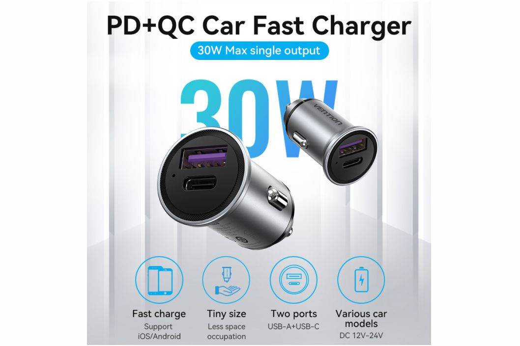 ⭐️ Vention Car Charger Dual USB Port QC Quick Charge ⭐️