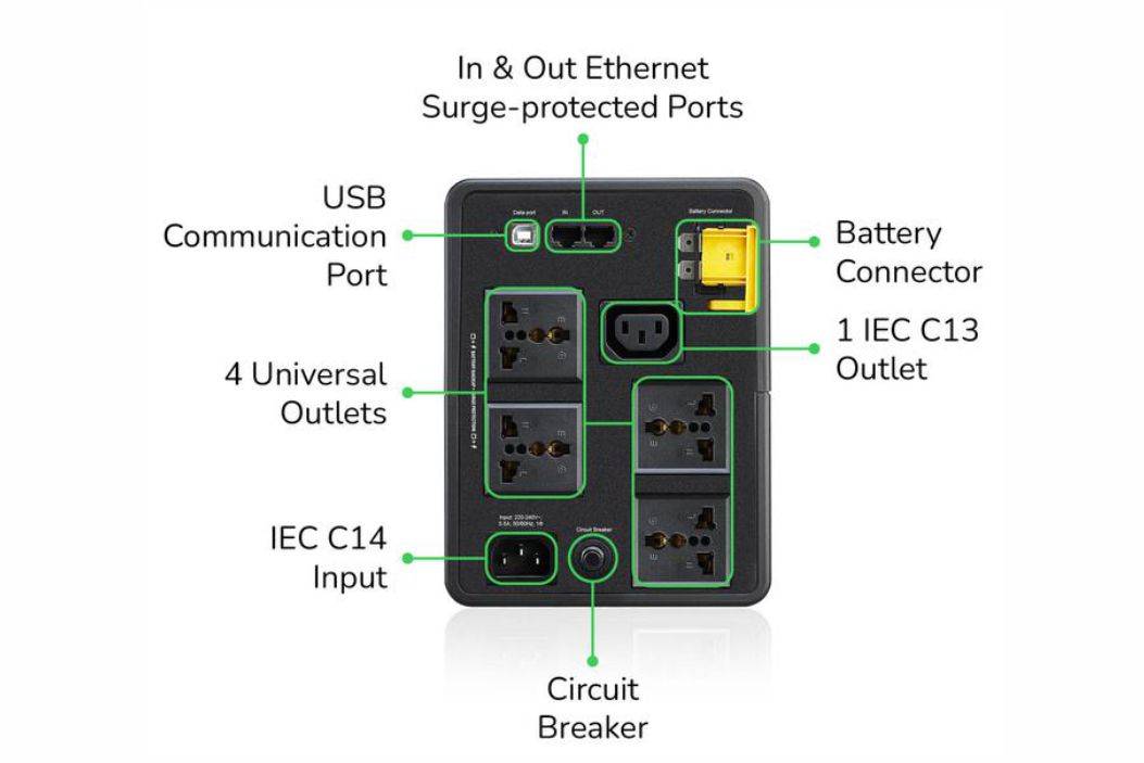 - Battery-protected and surge-only outlets