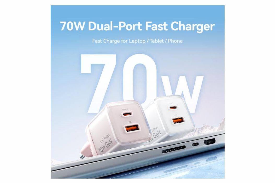 FEATURES : 🔹Teknologi GaN V – efisien, tidak panas 🔹Desain compact dan travel-friendly 🔹24h Eight-Layer Protection 🔹Fast Charging (Max 70W) Single Port output USB-C : 70W USB-A : 22.5W Dual Port output USB-A+USB-C : 15W+45W