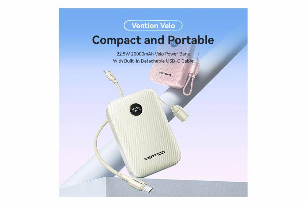 Vention Powerbank Pro Series 20000mAH 22.5W Built-in Cable Fast Charging Dual Port USB-C USB-A For iPhone Andorid FKB-Black