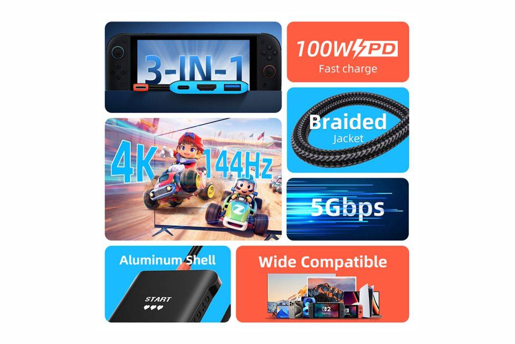 ~3In1 Dock for Switch 2/1~4K144Hz Display for Smoth Gaming~100W Power Delivery~Super Speed 5Gbps Fast Data Transfe