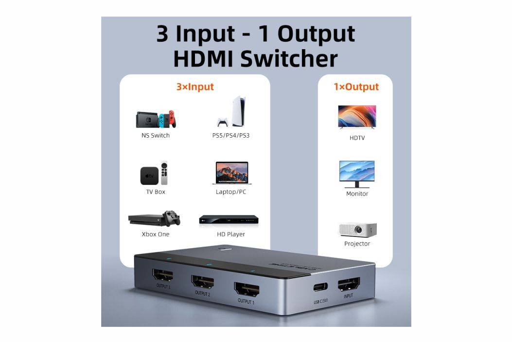 ⚡️ HDMI Switcher CABLETIME 3 In 1 Out 4K Premium Series ⚡️