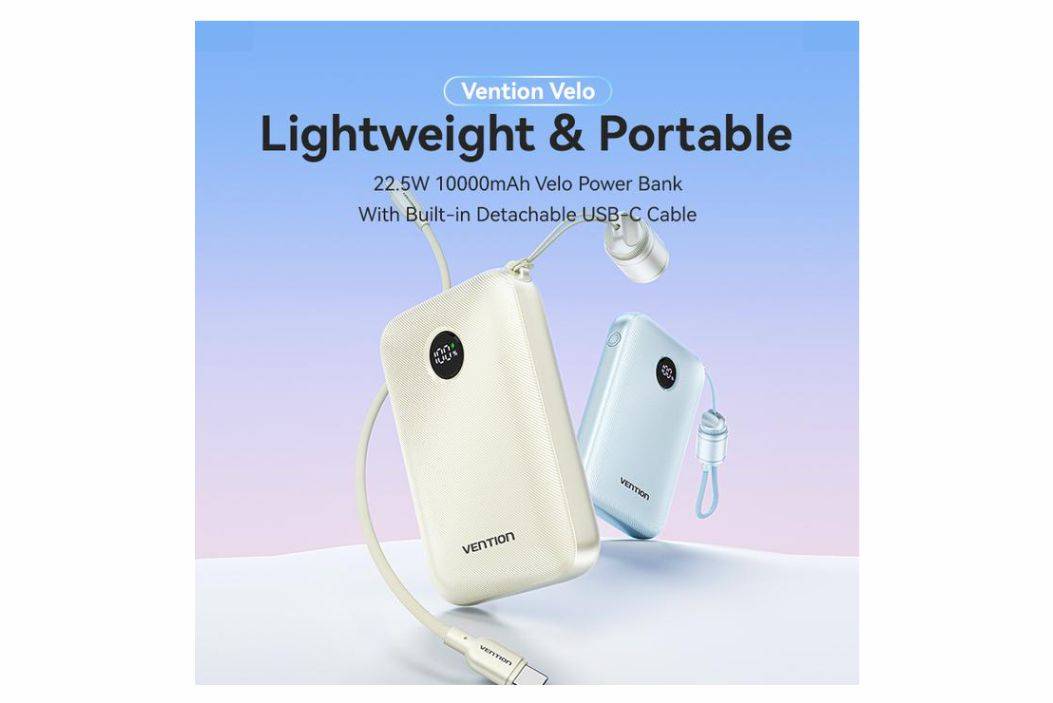Vention Powerbank Pro Series 10000mAH 22.5W Built-in Cable Fast Charging Dual Port USB-C USB-A For iPhone Android FKA-Beige