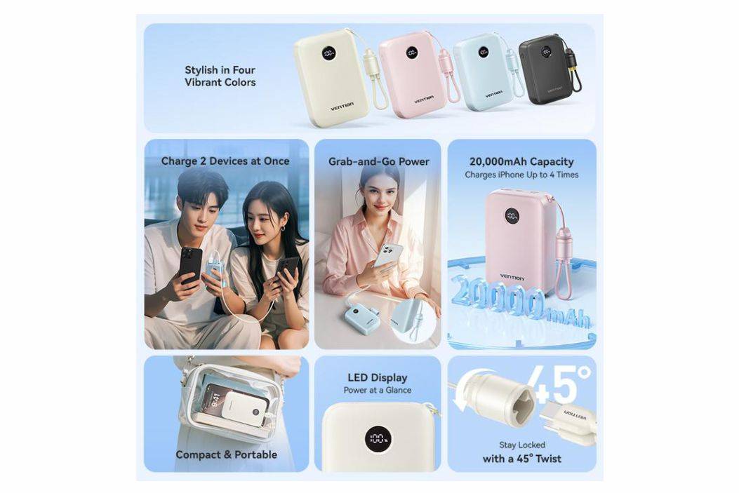 FEATURES: 🔹 Airline approved - Aman dibawa saat penerbangan 🔹 Built in detachable cable 🔹 Compact & Portable 🔹 LED Display 🔹 Charge 2 Devices at Once 🔹 Stay Locked with 45° Twist 🔹 Superior Safety – Perlindungan lengkap (Short Circuit, Overvoltage, Overcurrent, Over-discharge, Reverse Polarity, Over-power)
