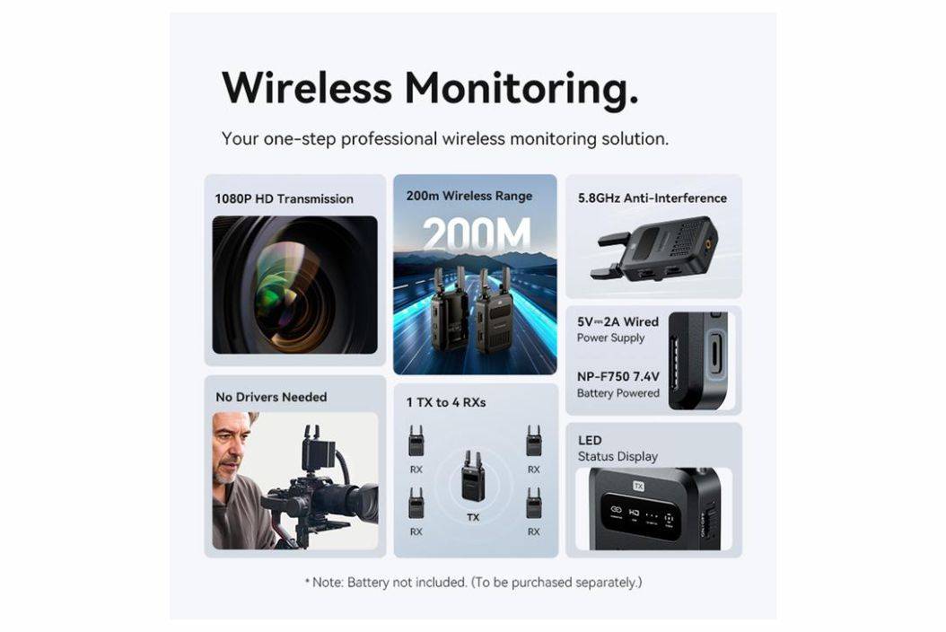 🔹 1080P@60Hz Transmission, 5.8GHz Anti-Interference
